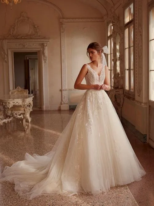 At White Canvas Bride, our bridal collection brings together some of the world's most celebrated designers to create unforgettable wedding day moments. Discover the clean, modern elegance of Yedyna, the bold luxury of Demetrios, and the regal glamour of Vladiyan. For brides who dream of couture artistry, Fler offers timeless sophistication, while Victoria Soprano delivers European elegance with couture-inspired detail. Each gown is crafted with exquisite fabrics and impeccable design, ensuring every bride feels radiant, confident, and uniquely herself. Explore our bridal collection and find the designer gown that captures your vision for a truly extraordinary day.