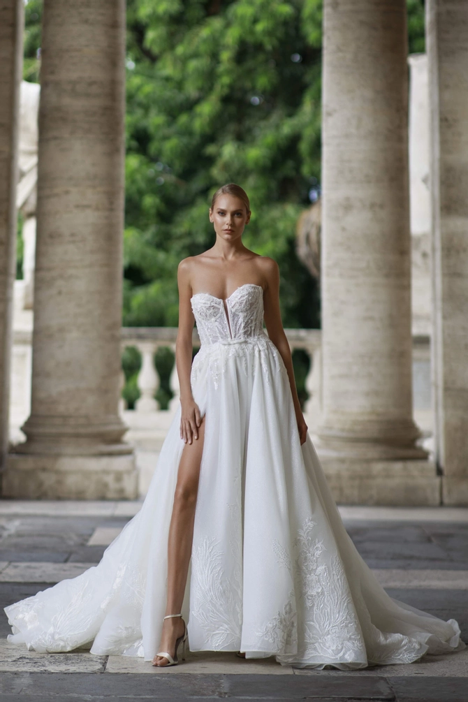 At White Canvas Bride, our bridal collection brings together some of the world's most celebrated designers to create unforgettable wedding day moments. Discover the clean, modern elegance of Yedyna, the bold luxury of Demetrios, and the regal glamour of Vladiyan. For brides who dream of couture artistry, Fler offers timeless sophistication, while Victoria Soprano delivers European elegance with couture-inspired detail. Each gown is crafted with exquisite fabrics and impeccable design, ensuring every bride feels radiant, confident, and uniquely herself. Explore our bridal collection and find the designer gown that captures your vision for a truly extraordinary day.