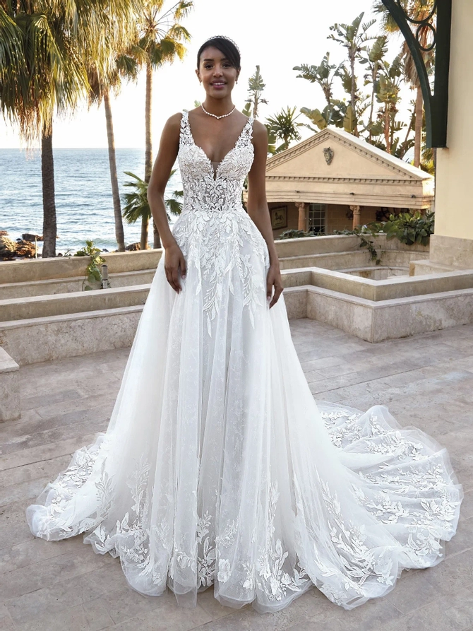 At White Canvas Bride, our bridal collection brings together some of the world's most celebrated designers to create unforgettable wedding day moments. Discover the clean, modern elegance of Yedyna, the bold luxury of Demetrios, and the regal glamour of Vladiyan. For brides who dream of couture artistry, Fler offers timeless sophistication, while Victoria Soprano delivers European elegance with couture-inspired detail. Each gown is crafted with exquisite fabrics and impeccable design, ensuring every bride feels radiant, confident, and uniquely herself. Explore our bridal collection and find the designer gown that captures your vision for a truly extraordinary day.