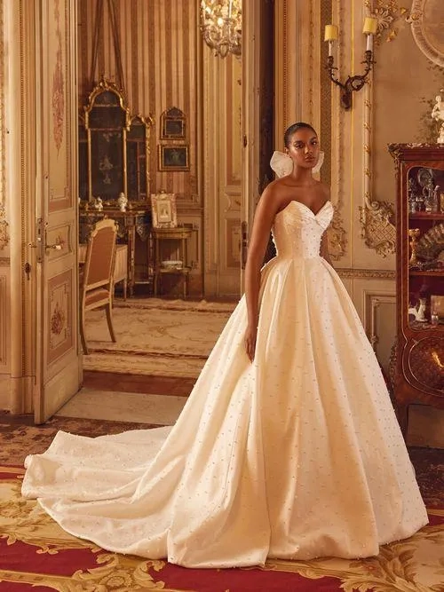 At White Canvas Bride, our bridal collection brings together some of the world's most celebrated designers to create unforgettable wedding day moments. Discover the clean, modern elegance of Yedyna, the bold luxury of Demetrios, and the regal glamour of Vladiyan. For brides who dream of couture artistry, Fler offers timeless sophistication, while Victoria Soprano delivers European elegance with couture-inspired detail. Each gown is crafted with exquisite fabrics and impeccable design, ensuring every bride feels radiant, confident, and uniquely herself. Explore our bridal collection and find the designer gown that captures your vision for a truly extraordinary day.